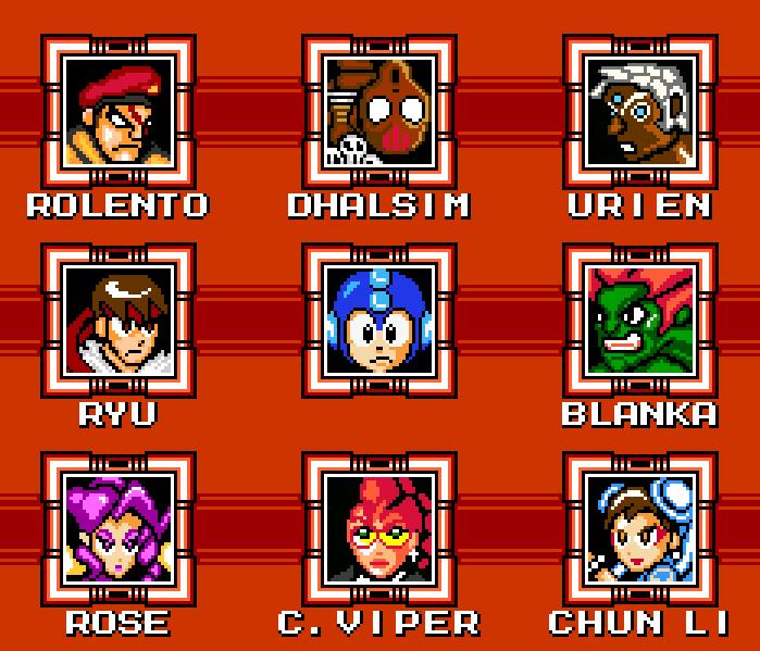 この作品は題名の通りロックマンとストリートファイターのクロスオーバー作品となっており、今作では8体のボスはストリートファイターのキャラとなっています。