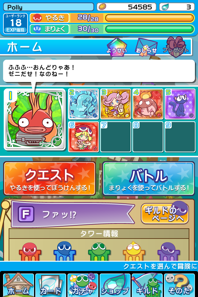なんかウワサによると、このゲームはパズドラとやらにめっちゃ似ているみたいですね。私はパズドラをプレイした事が無いのですが、似ているこのゲームをプレイしてなんとなくパズドラが流行った理由がわかる気がします。