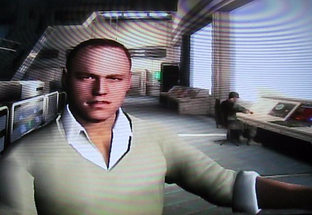 OO6:「やぁ、ジェームズ。いいところに来たな。ナターリアに罪をかぶってもらう事にしたんだよ。GOLDENEYEの制御装置には彼女の指紋を残すとしよう。おい、女をそこに座らせろ!」