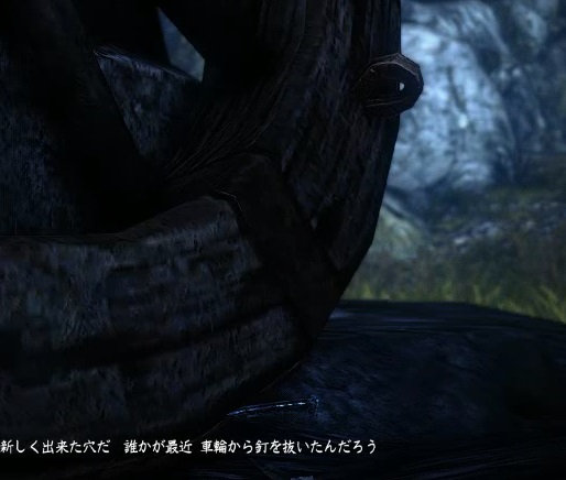 サブリナの呪いのせいで誰も怖がって近くに近寄らない磔台ですが、誰かが立ち寄った形跡が残っています。ケイドウェン軍支給のブーツの跡ようです。