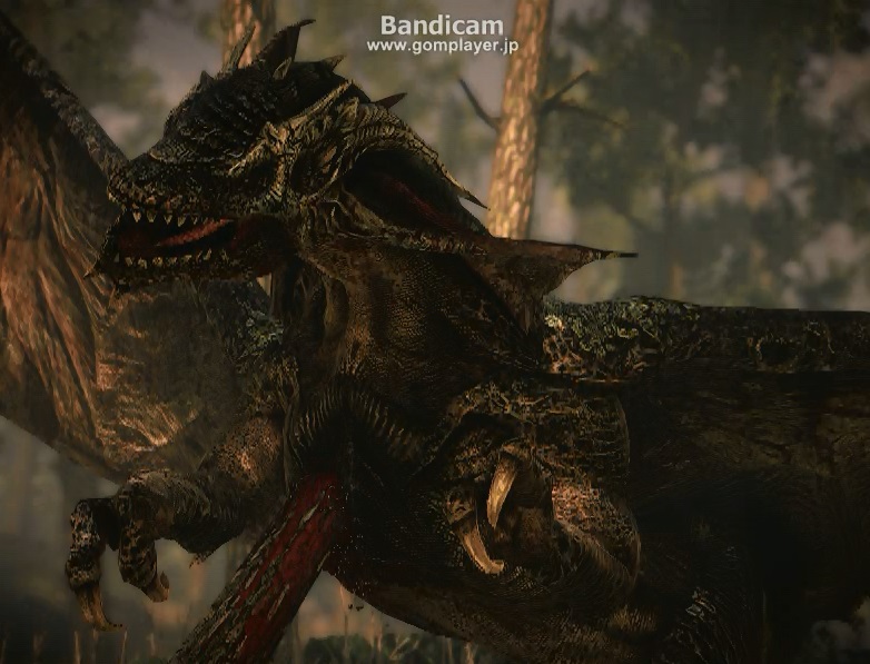 ドラゴンはそのままゲラルトを乗せたまま飛び去りますが、着地の際、木に身体を突き刺してしまいます。