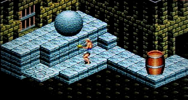大玉とタル爆弾の部屋はこのような配置にしてタル爆弾を扉の前まで押し込んで着火すればOKです。このゲームは時間差で動かす仕掛けが多いような気がします。