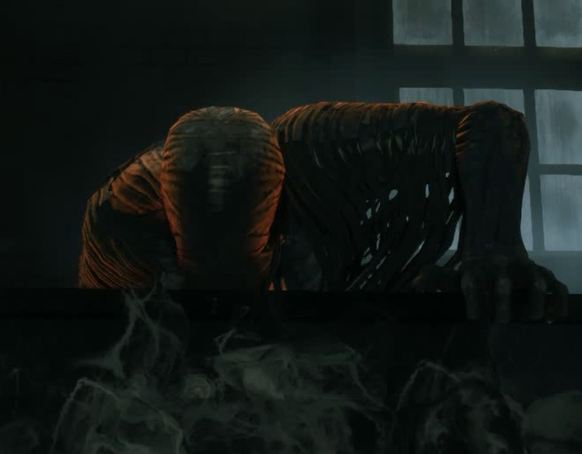 部屋には手と足だけが残った不気味な箇所があります。このように中途半端にこの世に残った記憶の残余に対しては霊体の能力で可視化する事ができます。