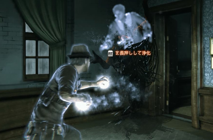 ただ証拠を集めて捜査するだけのゲームではなく、このように邪魔をしてくる悪霊との闘いもあります。証拠集めだけのゲームだとさすがにつまらないよね…。