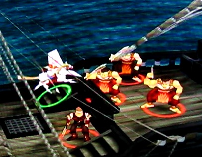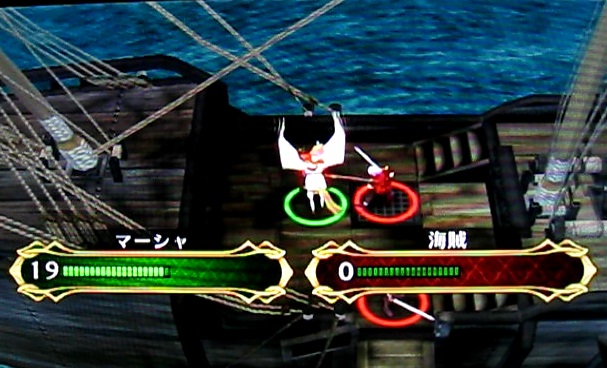 マーシャは船の管板の上に逃げて様子を見ることになります。まぁ、ペガサスナイトですからね。海賊たちもうかつに襲い掛かれないという事でしょうか。