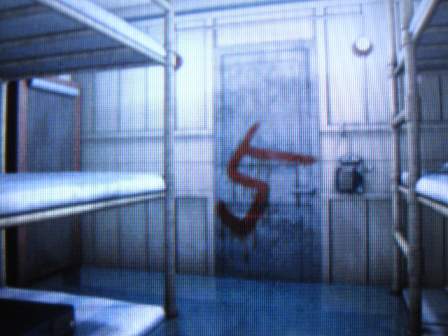 まず、右側ベットの最下段から、青文字で「アカ」と書かれたメモを発見できます。先ほど見つけた赤文字のメモと何か関連性がありそうです。次に左側ベッドの奥にある鏡を見ると、小さな鍵(赤)を発見できます。
