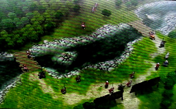 さて、進撃ですが、西の森林地帯を経由しつつ西側の橋から攻めあがります。森林地帯は回避率が上がるのでこちらは森林、相手は平地の形で戦うと有利になります。