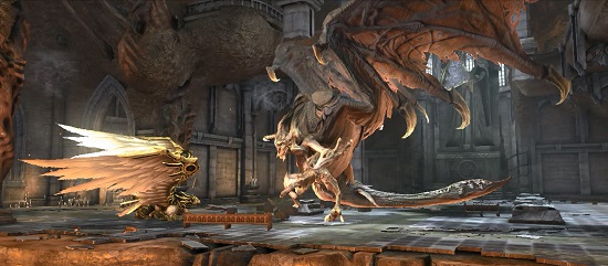 大広間では、ウォーが乗ってきたグリフォンと、このダンジョンのボスであるティアマットが交戦しています。