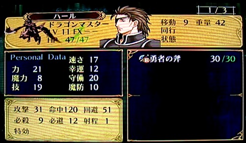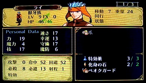 う~ん、ちょっと物足りないかも。しかし、ラグズユニットが育っていない私のようなプレイヤーでも即戦力として使っていける能力値ではあります。