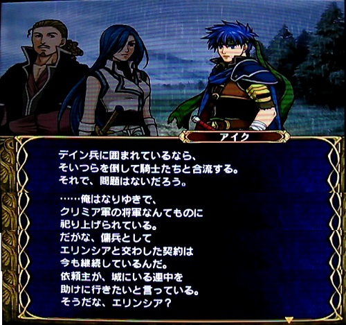 「ファイアーエムブレム 蒼炎の軌跡」のゲームのプレイを続けます。