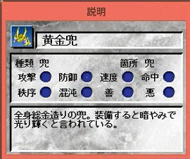 う~む、初期なら迷わず装備させたんですが、今はもう強い兜を装備してしまっているので、自宅の棚に陳列して金に換えちゃいます。ごめんよ。