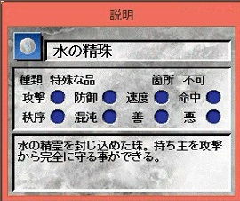 これを所持しているだけで、先程のウィンディーネのように一定確率で攻撃を完全回避できるようになります。装備欄を圧迫しないのが素晴らしいですね。このパーティーの唯一の前衛で一番被弾率が高いマリーネに持たせておきます。