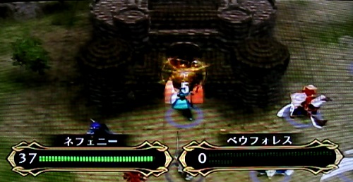 ジョフレ、ハール、タニス、タウロニオからは武器を剥いでおきます。反撃で敵を倒してもらっては困るからです。経験値はしっかりとレギュラーユニットに消化させたいところ。