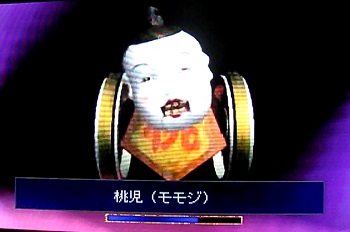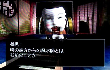 桃児: 「時の彼方からの風水師とはお前のことか…お前のことは、さっき食ってやった医者が知っていたぞ。そいつは不老不死の命を求めて血迷っていた。お前にも迷いが見えるぞ。食ってやる、食ってやる、食ってやる」