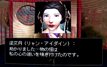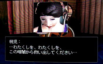 桃児: 「…わたくしを、わたくしを、この暗闇から救い出してください…わたくしは陛下に仕える者、梁文丹(リャン・アイダイン)です。退魔の札を…早く…わたくしをここから救い出してください」