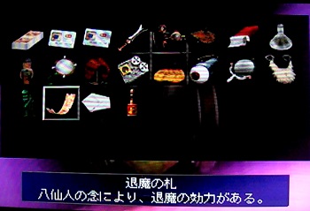 物の怪使い:「退魔の札は、物の怪そのものを消してしまう力がある。女官が、物の怪に完全に食われてしまう前に使うんだぞ!食われてしまってからだと、退魔の札の効力で、物の怪ともども女官も消滅してしまうからな。急いでくれ!」