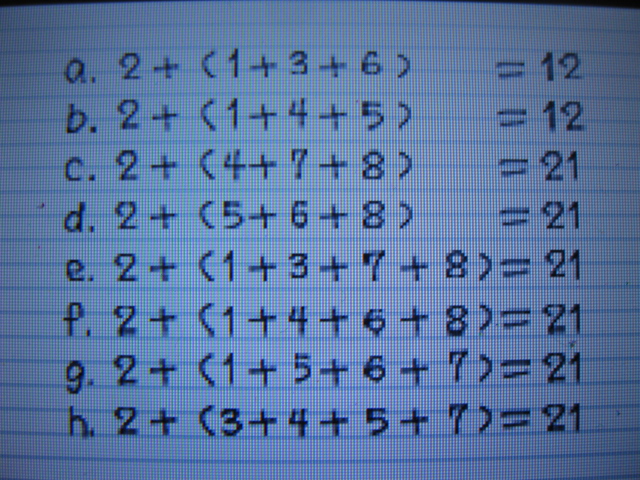 淳平:「この式だと(a)と(e)だ。…いや、待て…。(a)はありえない。紫が含まれているからだよ。あいつが犯人なんてことは…絶対に無い!」