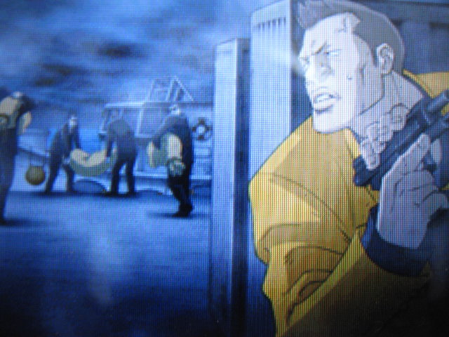 物陰に身を潜めていると、岸壁に一隻の不審船が…。その船上にはちらほらと人影が見えます。彼らは大きな袋に詰め込んだ何かを船の中に運びこんでいました。