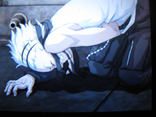 セブン:「なぁに。例には及ばんよ。このバカには、殴っても殴っても殴り足りないぐらいの恨みがあるんでな。9年前のことを想えばズタズタに引き裂いてやりてえぐらいだ。とはいえ…容疑者のくちが利けなくなっちまっちゃあ意味がねぇ。この続きは、留置所にぶち込んでからたっぷりさせてもらうことにするぜ。」
