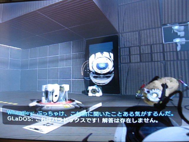 GLaDOSはパラドックス問題とかでWheatleyの思考を破壊しようと試みますが、Wheatleyがバカすぎて話が通じていません。