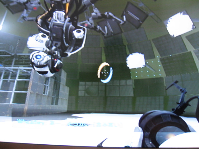 WheatleyはCHELLに向かって、丸型のミサイルのようなものを撃ってくるので、それをポータルを作ってワープさせ、Wheatleyにブチ当てるというのが基本的な戦法となります。