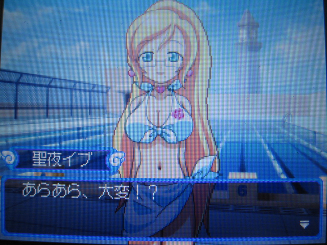 イブ:「責任者がいないとプールの解放なんてできないでしょ?今日は先生の番なの。ほらほら、そんなに騒がないで。他の子もいるんだから。」