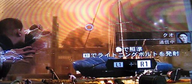 このステージでのコールの攻撃方法はL1ボタンで照準を合わせ、R1ボタンで発射できるライトニングボルトだけとなります。えーっとですね…ドラゴンボールとかに出てくるエネルギー弾のようなものだと思って下さい。