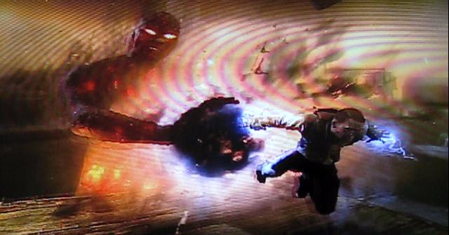 急に体が後ろに引っ張られます。ビーストです。奴はまだ生きていてコールをその巨大な腕に捉えてきます。ライトニングボルトで応戦してもがくコール…!