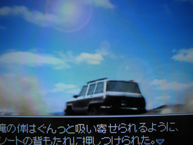 大型のSUV。実験棟のわきに停められていたものです。鍵はハンドルのわきに突き刺さったままで、ガスゲージはFULLを示しており、どうぞお使い下さい状態です。サンタが用意したものでしょうか。