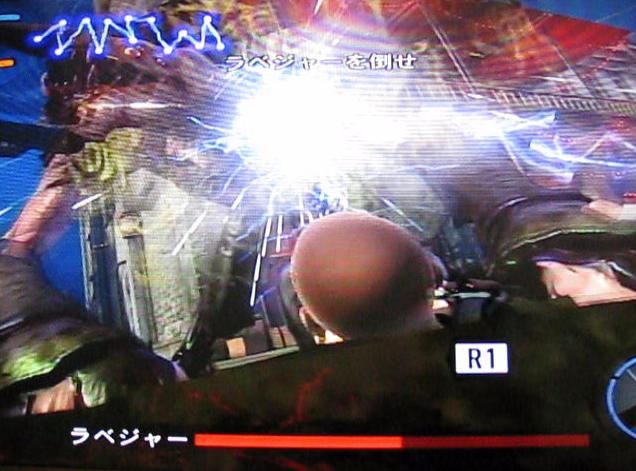 ごく稀に、写真のようにラベジャーに押え付けられてしまうので、ここは動く右手でライトニングボルトを連発してぶつけます。