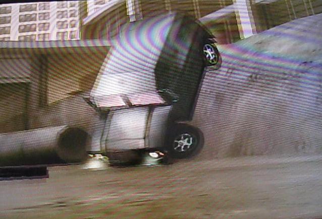 ウルモフは戦車をよけすぎ、車は段差に墜落します。