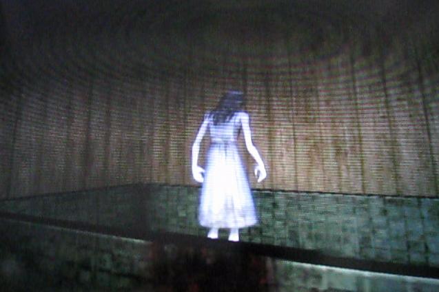 部屋の奥の棚の奥に女の子の霊っぽいものが居ます。確かこのゲーム、呪いのトリガーは女の子だったような気が…。