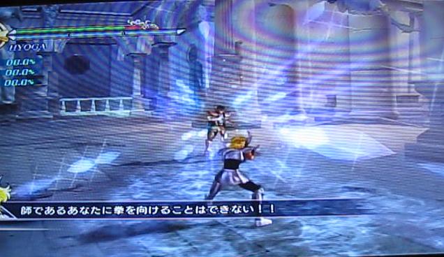 カミュは容赦なく、ダイヤモンドダストとカリツォーを連発してきます。攻撃できないんじゃサンドバックになるしかないわけなんですが…。