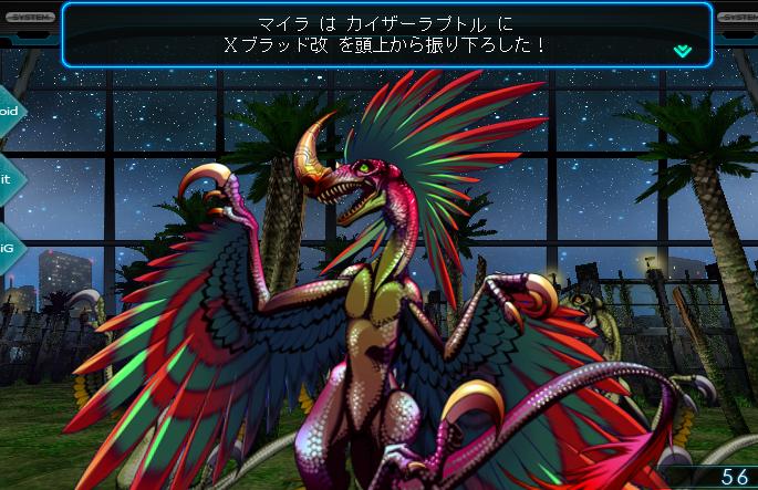さて、カイザーラプトルとの戦いですが、たくさんのお供を連れて出現します。物理攻撃ゴリ押しの異形なので、命中率を下げるなり、防御力を上げるなりの対策が必要です。