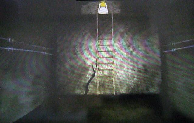 さて、真っ直ぐ戻ったはずのトンネルなのですが、行きついた先はなんと梯子。その上にはジュウザらしき人物が。