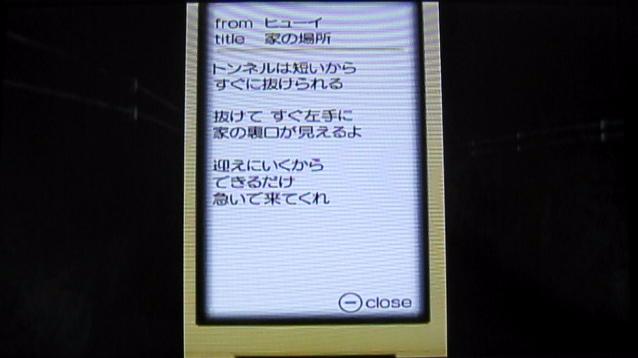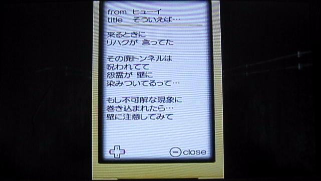 ヒューイ:「……その先にいくとトンネルがある。無事に出られればここまで来れる。僕もジュウザと一緒にいたい。だから……やっぱり合流しよう。一緒にいればなんとかなる。この最悪な夜も乗り越えられる気がする。お互いに頑張ろう。そうすればきっと……。」