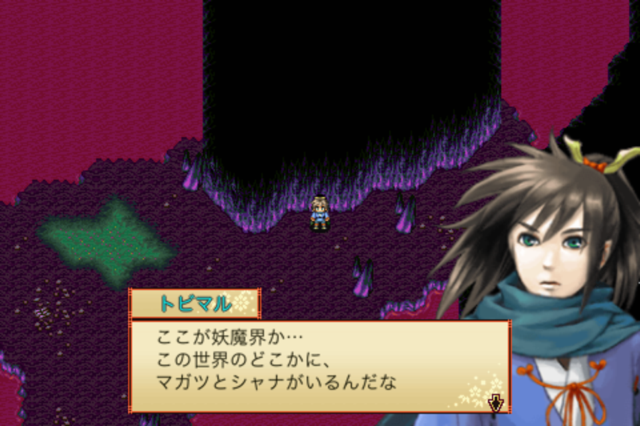 魂:「マガツ…?そうか。そういえば、生きている人はあの方をそう呼ぶのだったな。あの方は、この村から西にある妖魔城におられるはずだ。ここから行こうとするなら少し南に進んだところにある橋を越えていくのだな。」