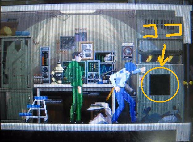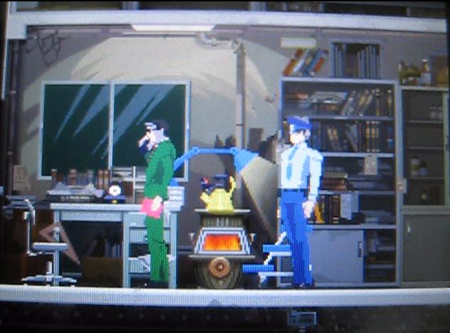 巡査:「ああ。そういえば、さっきそこのトビラから出て行きました。」