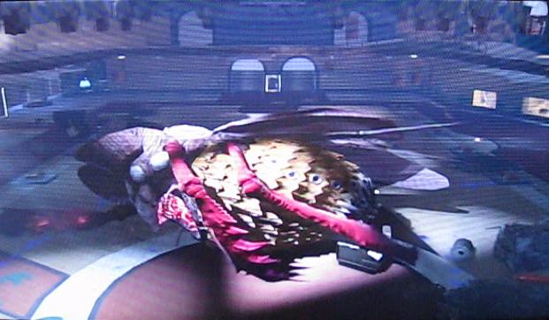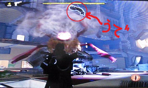 クワッドジョーに通常射撃は通用しません。かといってバタフライブレードは届きません。ブライスが言ったように、自分の腕を引きちぎり、クワッドジョーに吸い込ませましょう。L2ボタン長押しで左腕、R2ボタン長押しで右腕を引きちぎり投げ飛ばす事ができます。