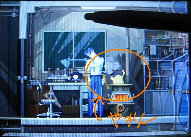 さて、この場面ですが、丸で囲んだヤカンの蓋を閉じることで巡査の動きを変えます。