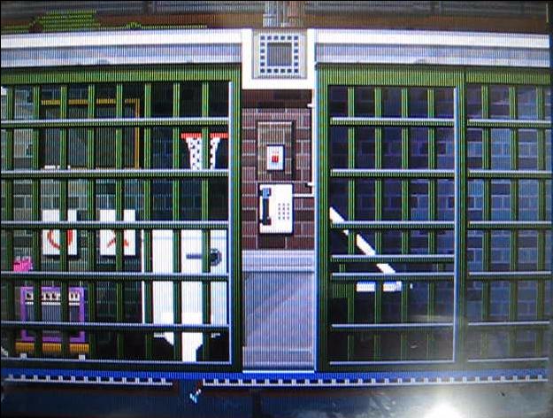 さて、ギザ頭は壁紙を丸めてトイレに流すので、それにトリツキ、下水管を流されて、右下の独房に向かいます。