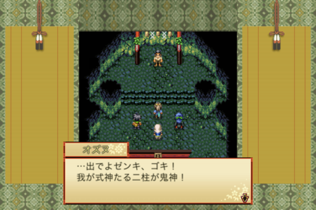 ゴズヌ:「ふむ…よくぞ試練を乗り越えたな。お前達は退魔衆の使命を正しく受け継いでいると確信した。見事だ、このオズヌの子孫よ。このオズヌは、お前を誇りに思うぞ。」