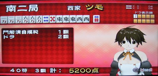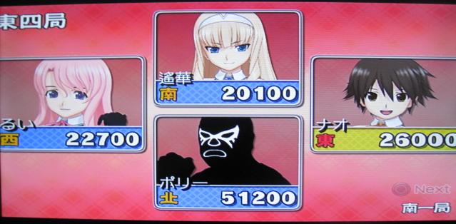 序盤はるい先生の先制攻撃があったりと、若干うろたえたのですが、私のツモがゲームでは非常に良かったのと、遥華の連続振込みがあったりして助けられました。