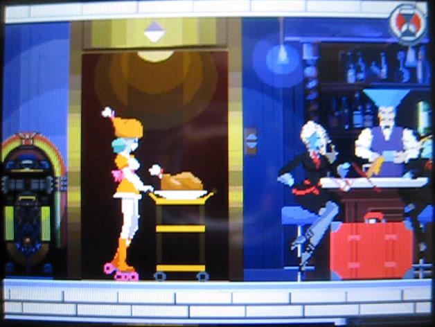さて、他の人を動かすためにはタマシイを移動させる必要があります。このステージで一番動き回るのはウェイトレスですので、まずは彼女にトリツキましょう。