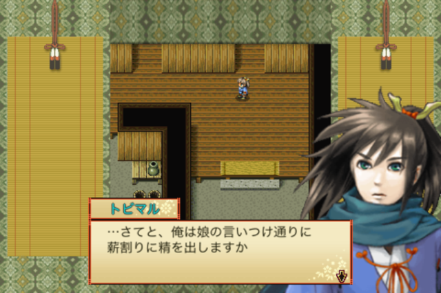 シャナ:「そういえば、もう煮炊きする分の薪しか残ってなかったんだわ。それじゃ、トビマルは薪割りをお願いするわね。」