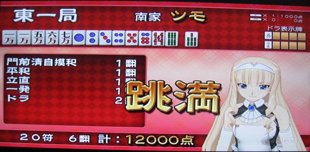 とりあえず南一局で親の倍満を遥華にぶつけておきます。