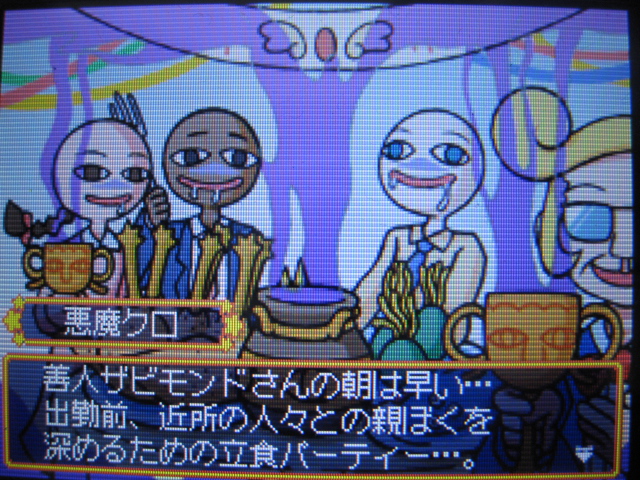 善人の一日は早い…。出勤前はご近所の方々と立食パーティー。天使界の神、プルワージュに掲げる人種や国籍、身分を越えた世界平和への第一歩。