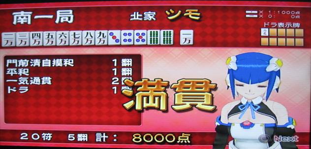 しかしオーラス、ついに私がアイリ直撃の跳満ロン!