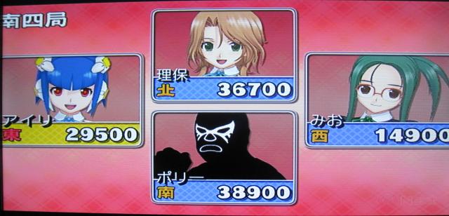 南場に入り、この満貫でアイリが一歩前に出ます。