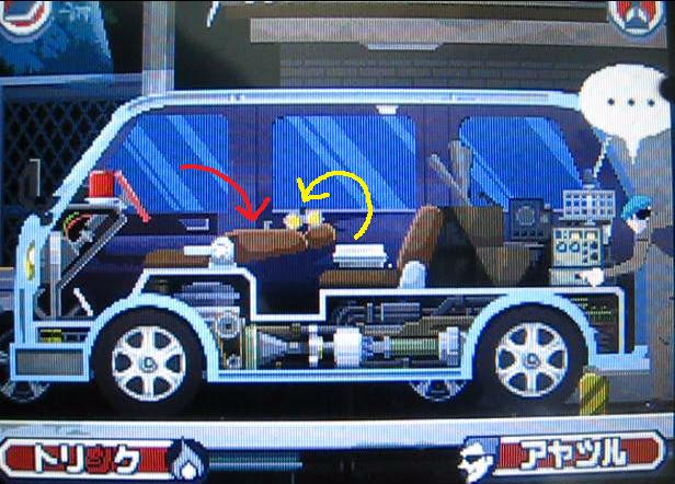 双眼鏡にはトリツク事ができるので、運転席のカイテントウを鳴らして刑事を誘導します。